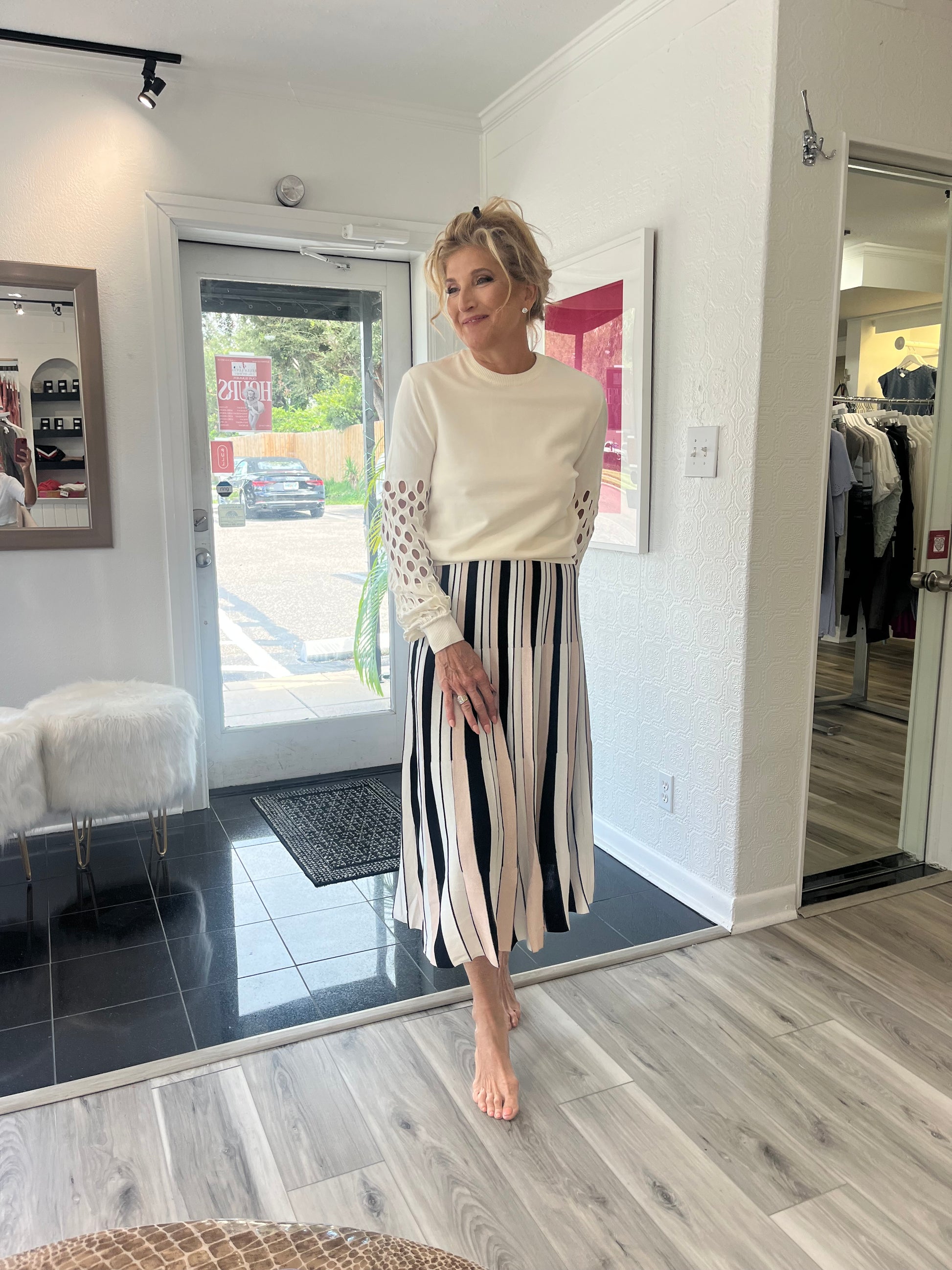 MIDTOWN PERFORATED BALLOON SLEEVE L/S SWEATER
